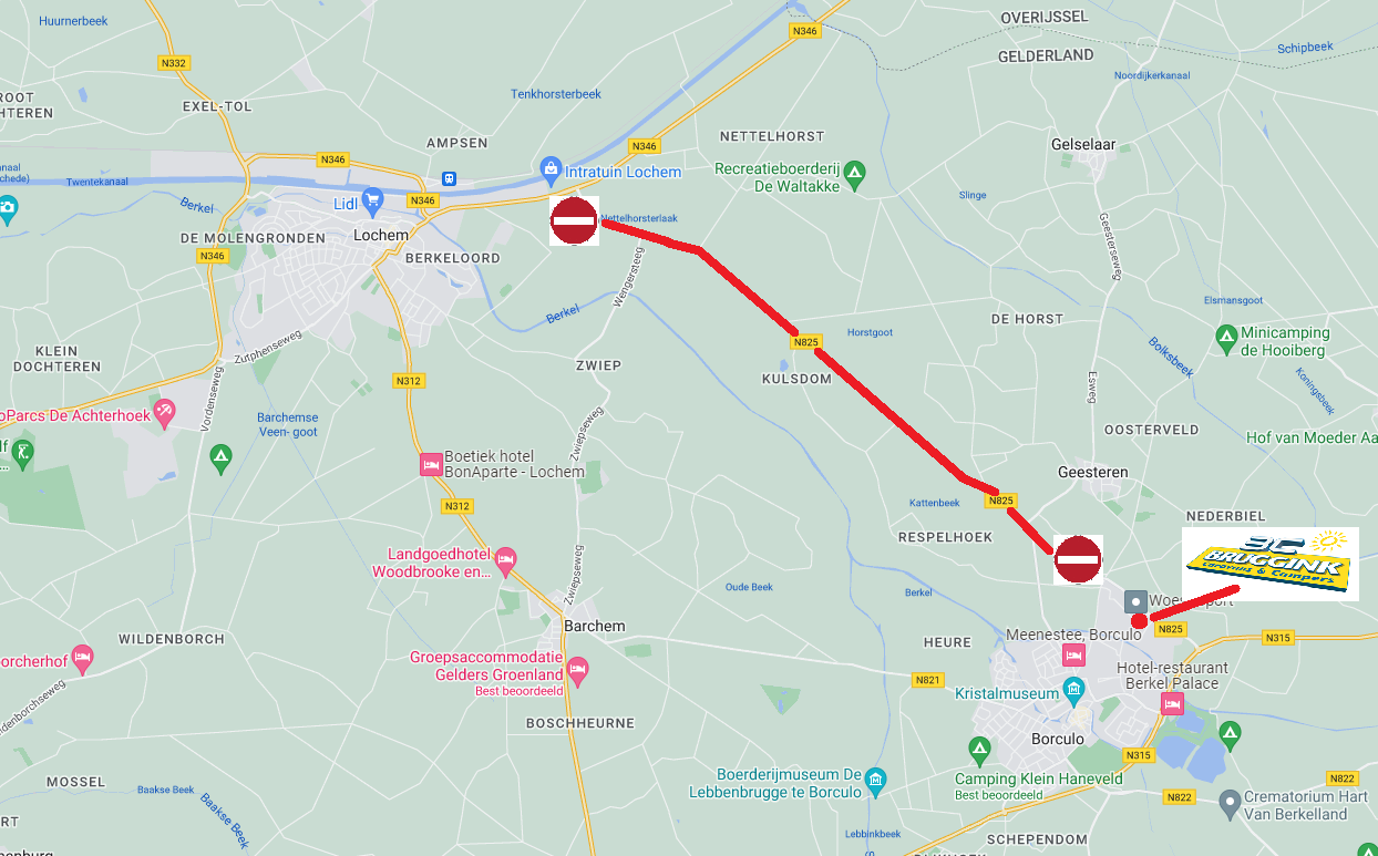 Momenteel wordt er aan de weg gewerkt! De N825 tussen Lochem en Borculo is daardoor afgesloten tot +- eind november.